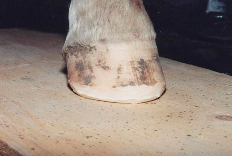 To unload the wall it is simply necessary to eliminate the ground surface (rim) of the hoof wall from contacting the ground. With no ground resistance, there can be no forces acting on the wall or the laminae.