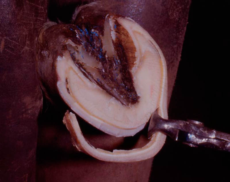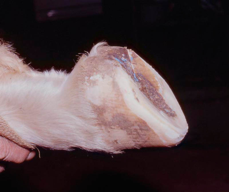 Continue to keep the hoof wall unloaded until a new length of hoof wall has grown out. (twelve months). Manage the horse and its environment to enhance the healing process. Provide deep soft ground, good nutrition, and space to move around.